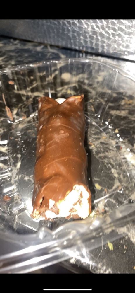 Crispy light shell stuffed with cream filling dipped in dark chocolate.